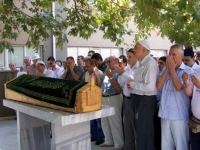 Ezan bitti. Camiye öğle namazı için girdik. Namaz bittikten sonra Şeker Hoca cübbesini ve sarığını çıkarmadan avluya çıktı, cemaat de arkasından. Musalla taşının önüne geldi. Cenaze namazının nasıl kılınacağını kısaca anlattı. Benli, "Kolaymış" dedi. "Zor olan tabutun içinde olmak" dedi Mülayim. Şeker Hoca "Er kişi niyetine" dedikten sonra "Allahü ekber" diyerek tekbir aldı. Biz de ona uyduk. böylece ilk cenaze namazımızı da kılmış olduk. |