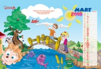 Takvimde, Nasrettin Hoca, bilgisayar kullanırken ve ağaç dikerken, Keloğlan ise annesine yardım ederken, hayvanları beslerken, kitap alırken ve aşure dağıtırken tasvir ediliyor. Önemli günlerin de vurgulandığı takvimde, Keloğlan ile Nasrettin Hoca arasında 23 Nisan, Aşure Günü, Mevlid Kandili, Ramazan ve Kurban Bayramı ve Anneler Günü hakkında diyaloglar da geçiyor.